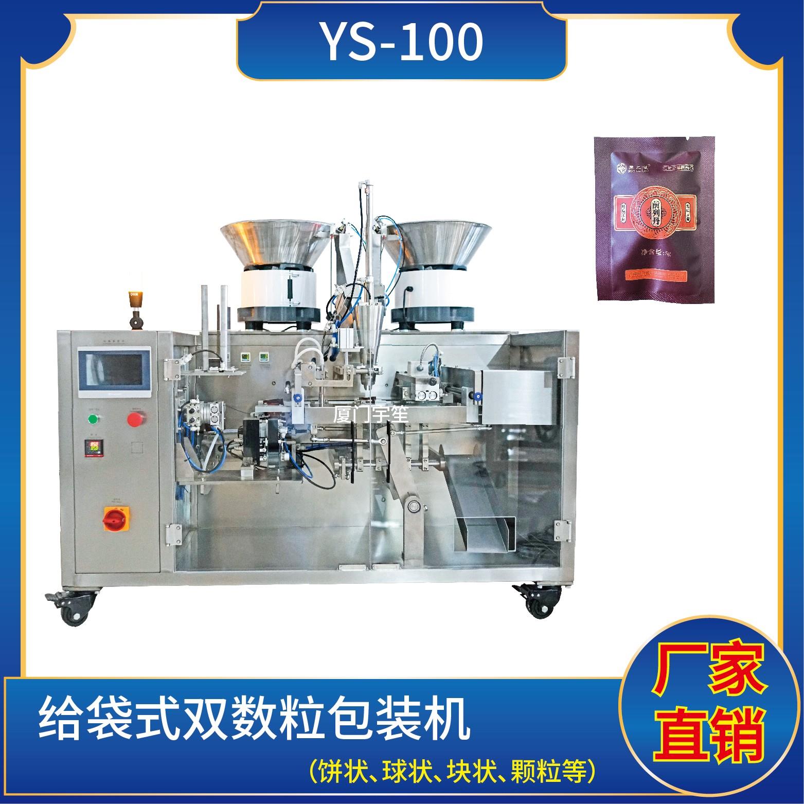 YS-SP100SL 雙數(shù)粒給袋式包裝機特 點1、適用于食品、醫(yī)藥、化工、化妝品行業(yè)中顆粒、餅狀、塊狀、球狀等物品的計量包裝。2、包裝流程全自動、無需人工操作??筛鶕?jù)充填物料的性質(zhì)選配不同的下料結(jié)構(gòu)。3、觸摸屏操作,PLC 控制,驅(qū)動步進電機控制袋長,性能穩(wěn)定、調(diào)整方便、檢測準(zhǔn)確。智能式溫控儀,PID調(diào)節(jié),保證將溫度的…