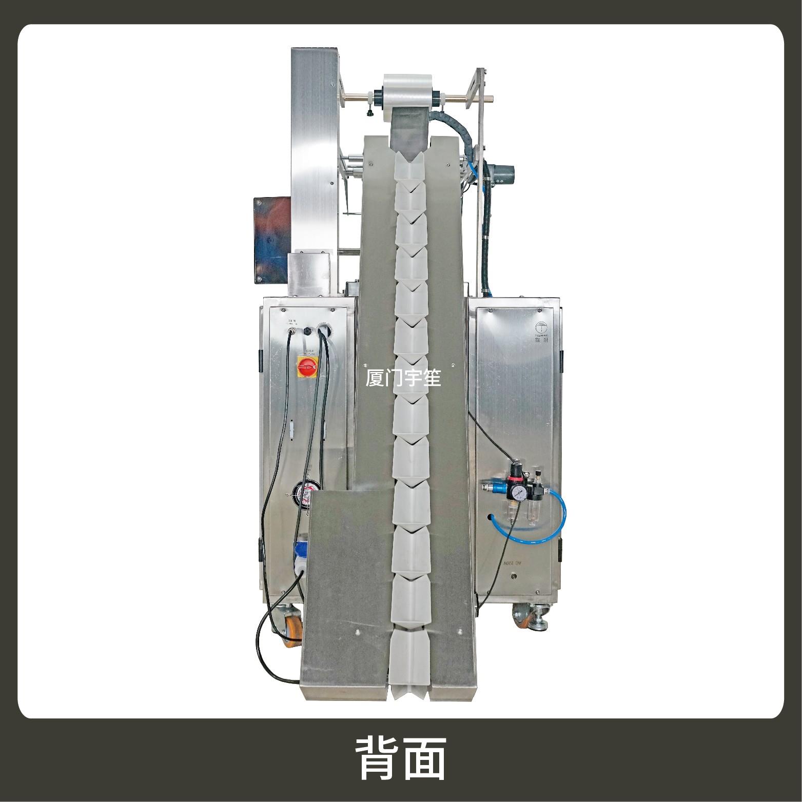 可完成三角包內(nèi)袋成品輸送至外袋包裝功能。
